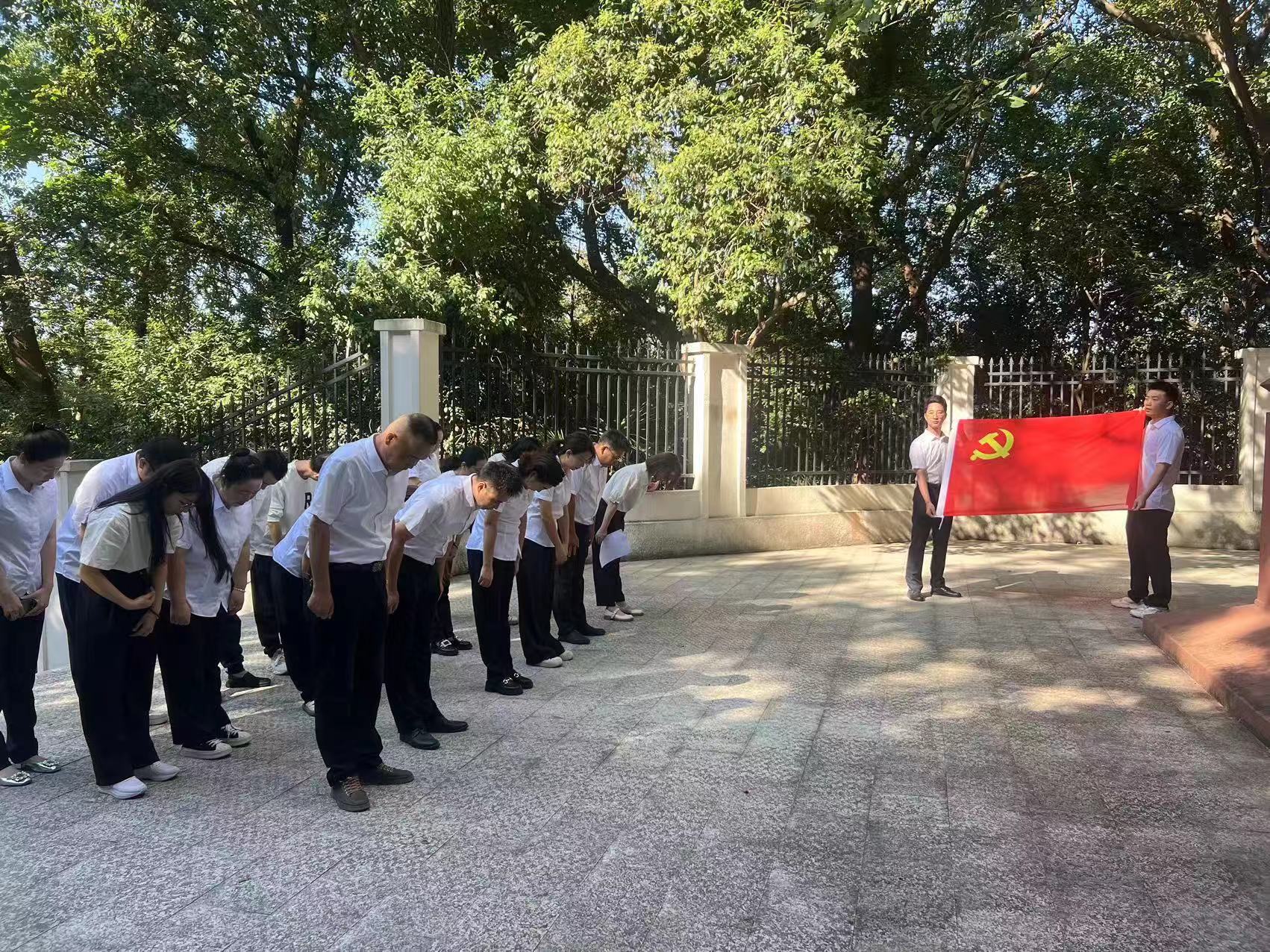 祭扫活动中,全体人员穿戴整洁,列队肃立,怀着对革命先烈的无限崇敬和缅怀之情,集体重温入党誓词,并鞠躬默哀,以表达对英雄烈士崇高的敬意和深切的缅怀。随后,同志们绕纪念碑一周,瞻仰革命烈士纪念碑,深切缅怀英烈们的丰功伟绩,深情寄托对烈士的无限哀思。一场简单而庄重的纪念仪式,让在场的党员干部职工们接受了一次红色精神的洗礼。