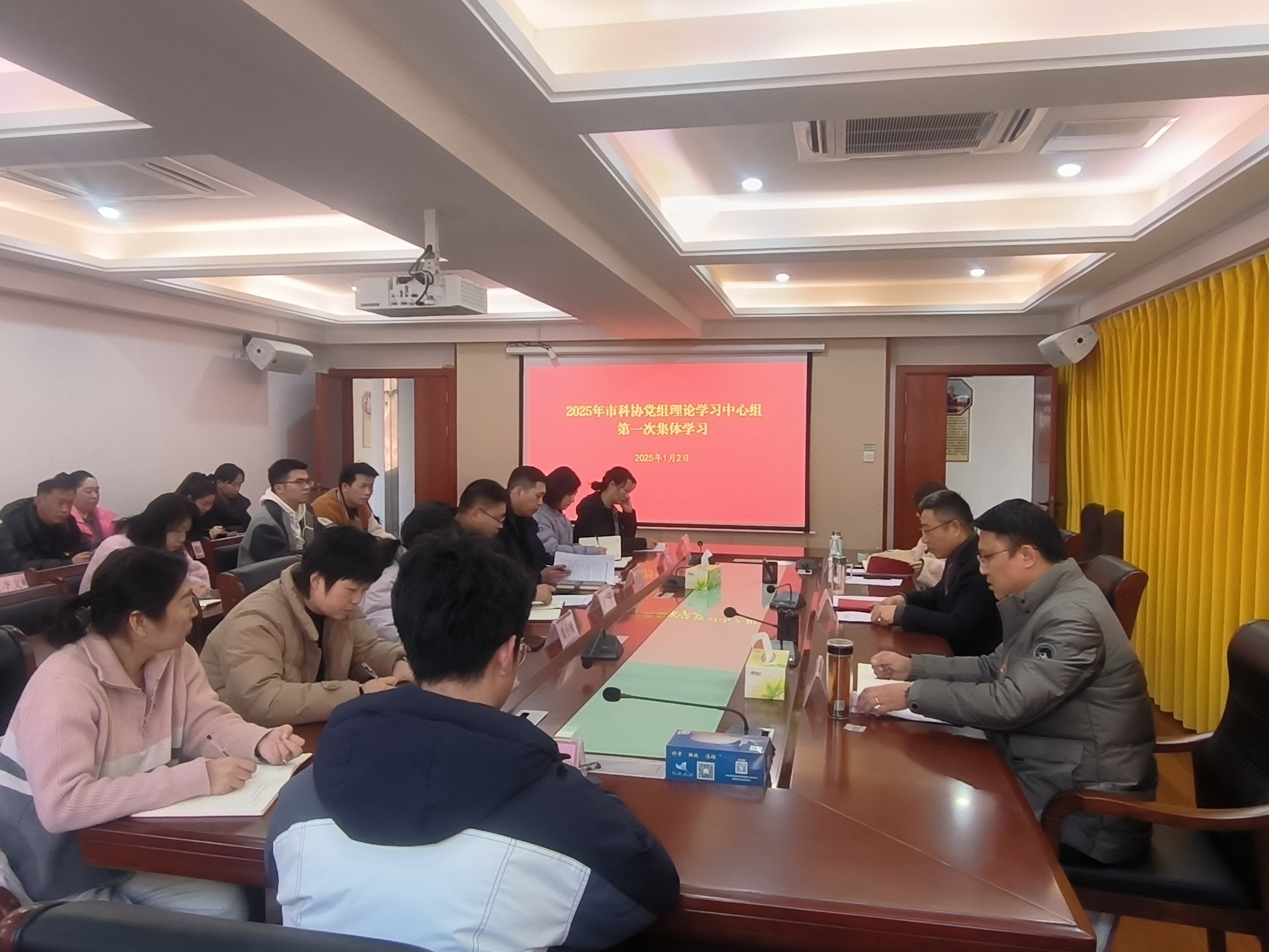 1月2日,市科协召开理论学习中心组集体学习(扩大)会,专题传达学习贯彻市委十二届七次全体(扩大)会议暨市委经济工作会议精神,党组书记、主席吴飞主持会议并讲话。领导班子成员,机关各部室、直属单位全体干部职工参加会议。