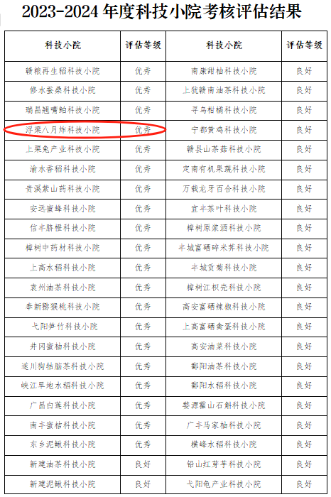 近日,在江西省科学技术协会公示“2023-2024年度科技小院考核评估结果”名单中,中国农技协江西浮梁八月炸科技小院获得优秀等级。