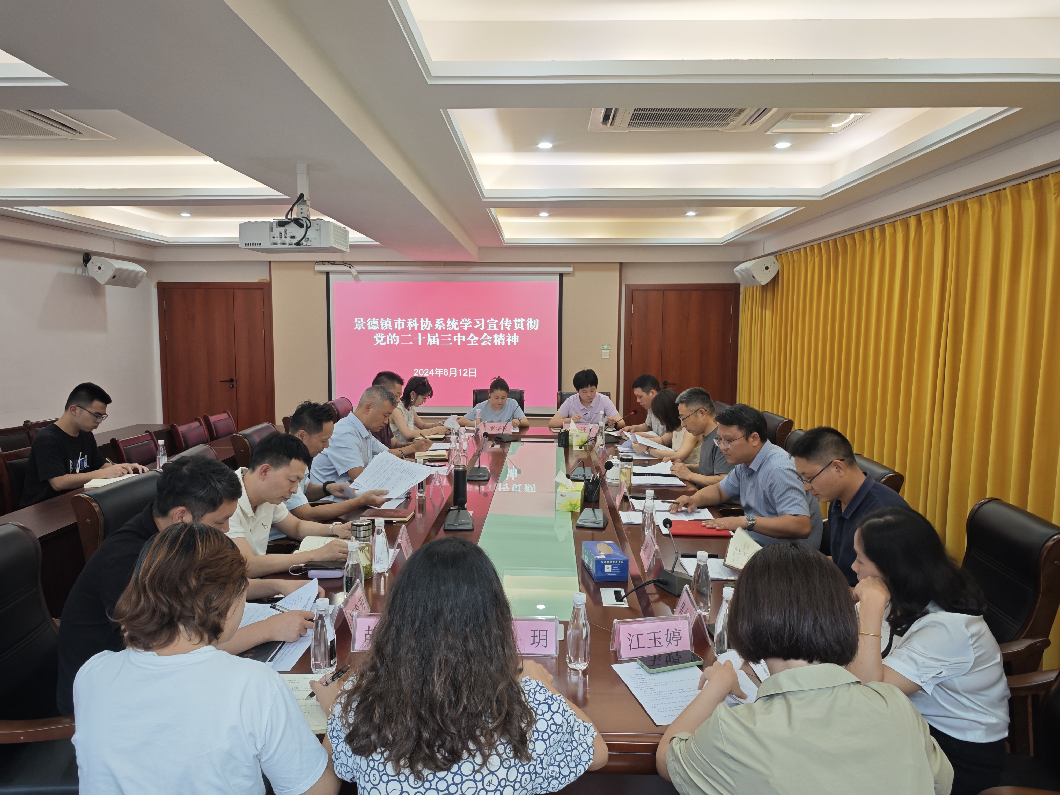 8月12日,市科协召开党组理论学习中心组(扩大)会议专题传达学习党的二十届三中全会精神,对学习宣传贯彻全会精神作出安排。市科协党组书记、主席吴飞主持会议并讲话,市科协领导班子成员,各县(市、区、园区)科协主席,市科协机关各部室及下属单位负责人参加会议。