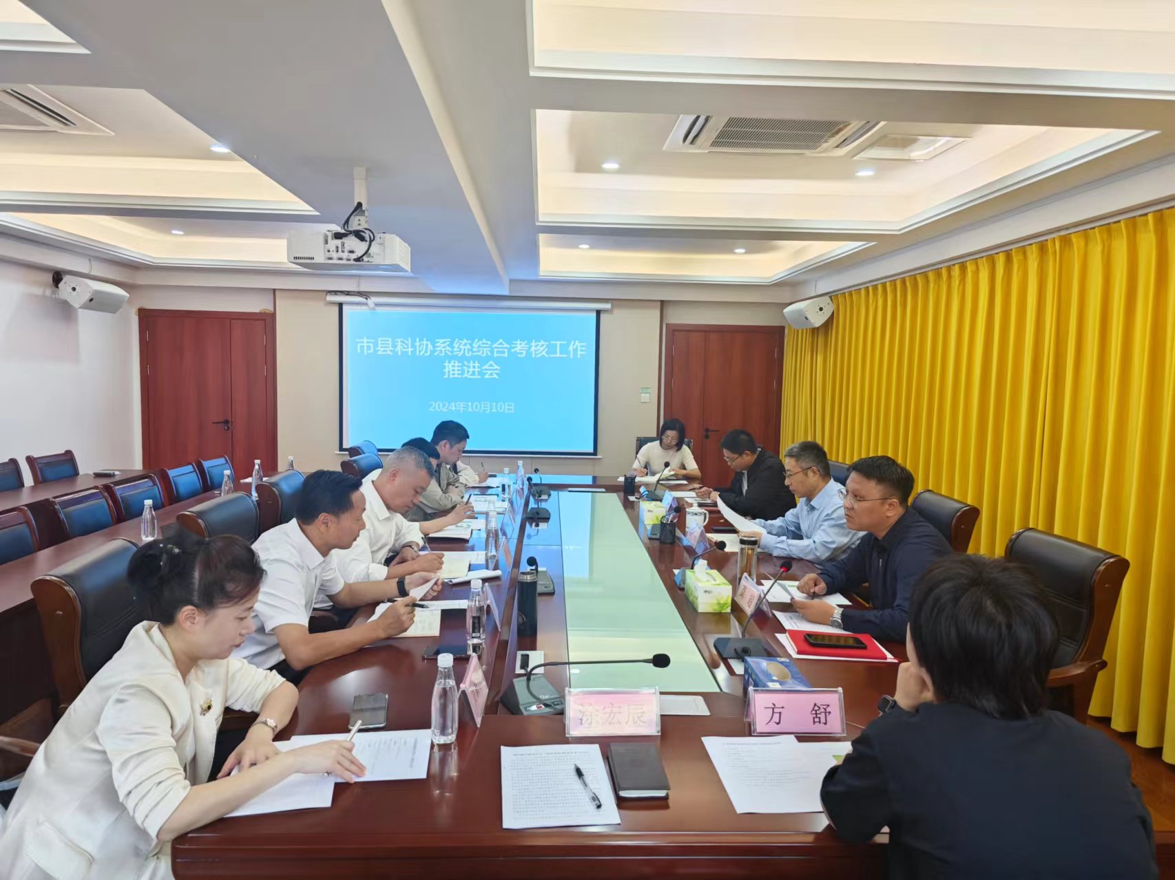10月10日,市科协召开市县科协系统综合考核工作推进会,市科协党组书记、主席吴飞出席会议并讲话,党组成员、副主席龚超出席会议,各县(市、区)、园区科协主要领导及相关负责同志参加,市科协秘书长周珂主持会议。