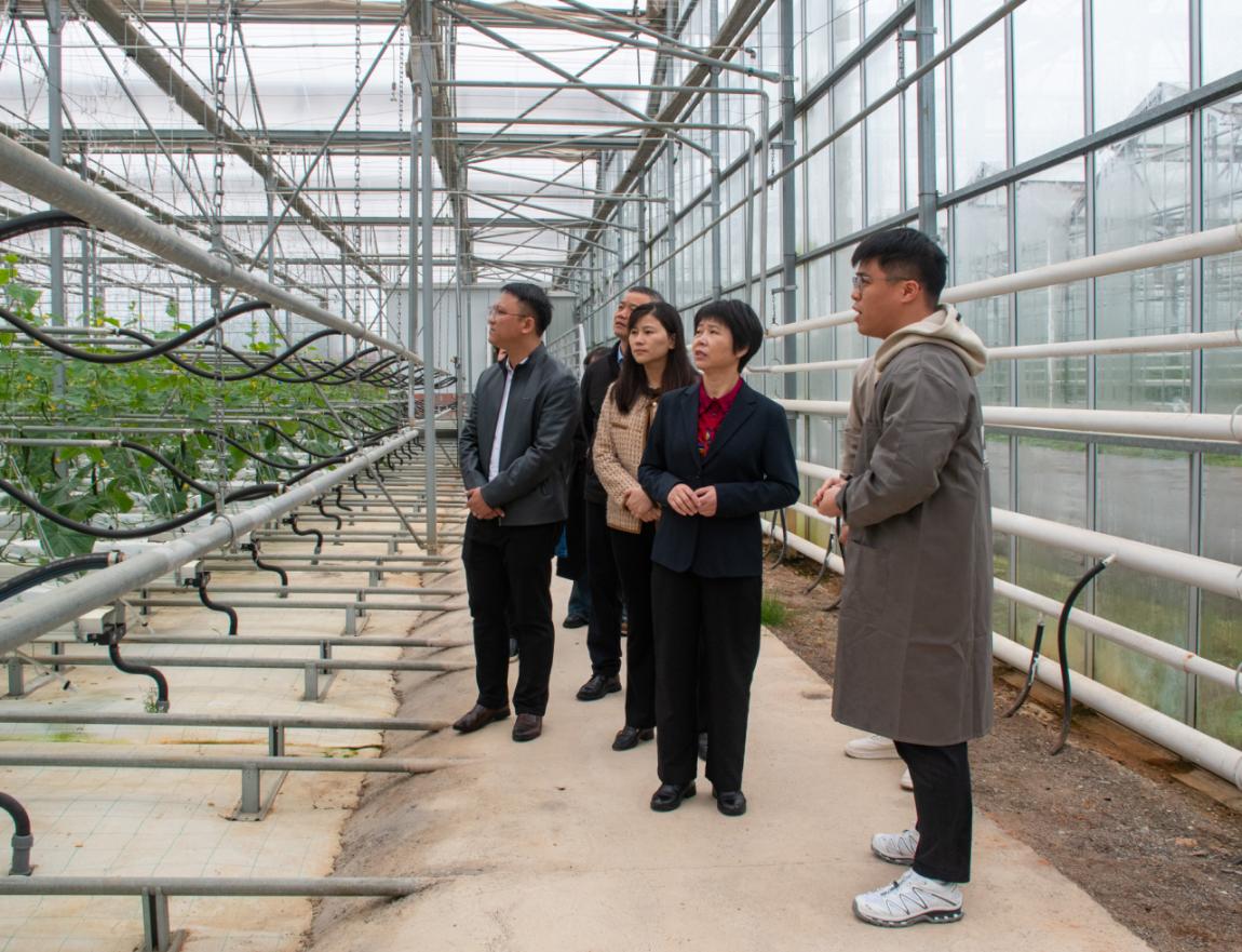 在乐平蔬果科技小院,黄朝一行实地走访了蔬菜大棚、草莓大棚和数字中心控制室,并与基地工作人员沟通交流了蔬果种植技术、产量、品质及经济效益等方面的情况。随后在座谈会上,黄朝听取了关于乐平蔬果科技小院的情况汇报,从科研团队入驻、配套条件、制度管理、科研成果等方面有了更详细的了解。黄朝对蔬果科技小院在积极引入现代农业技术,发展当地农业经济等方面取得的成绩表示认可,希望小院能继续为当地农业发展做出积极贡献。