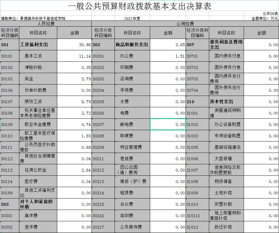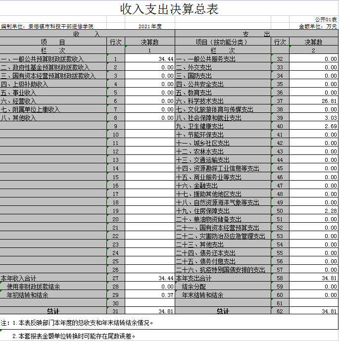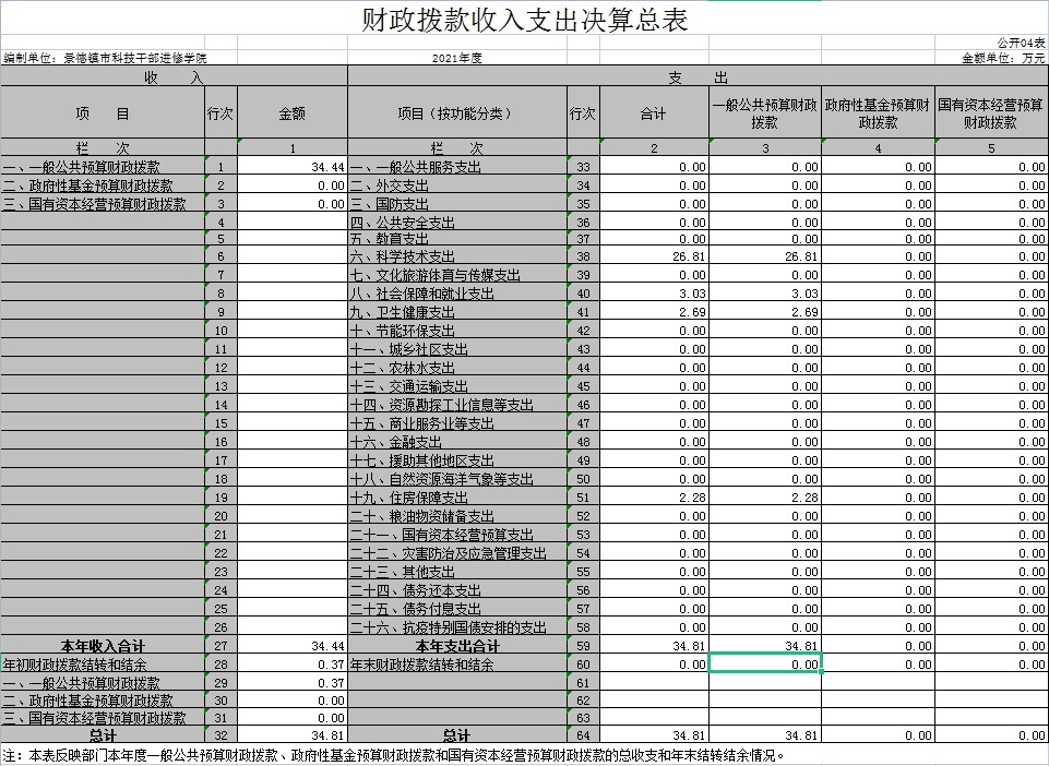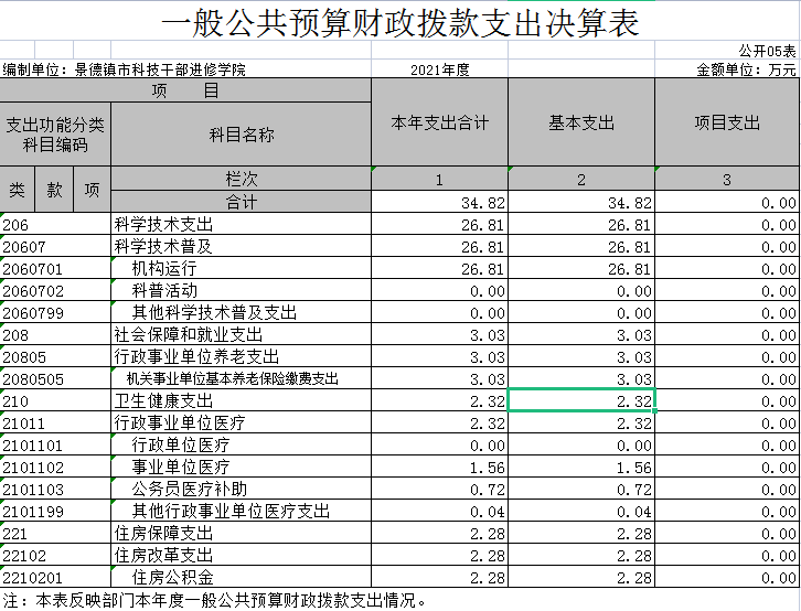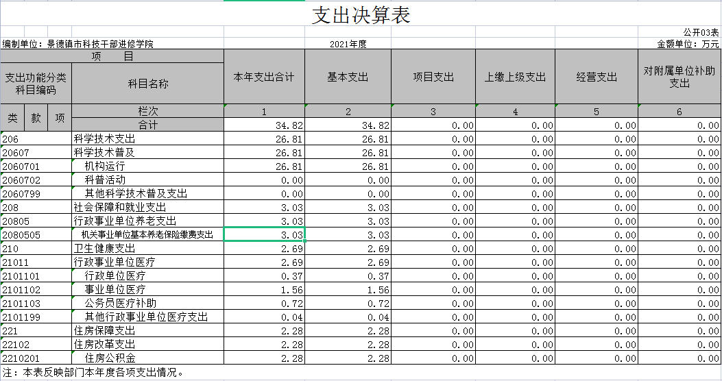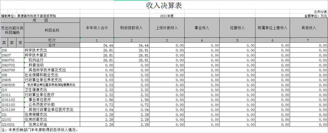 第二部分 2021年度科技干部进修学院决算表