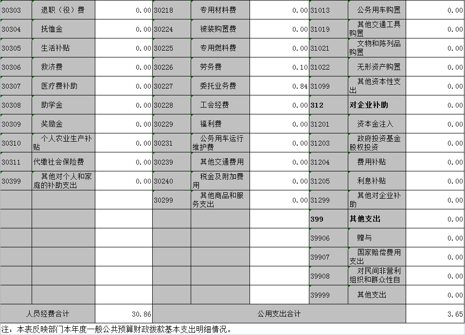 本部门2021年度政府采购支出总额0万元,其中:政府采购货物支出0万元、政府采购工程支出0万元、政府采购服务支出0万元。授予中小企业合同金额0万元,占政府采购支出总额的0%,其中:授予小微企业合同金额0万元,占政府采购支出总额的0%。货物采购授予中小企业合同金额占货物支出金额的0%,工程采购授予中小企业合同金额占工程支出金额的0%,服务采购授予中小企业合同金额占服务支出金额的0%。(单位公开的政府采购金额的计算口径为:本单位纳入2021年单位预算范围的各项政府采购支出金额之和。)