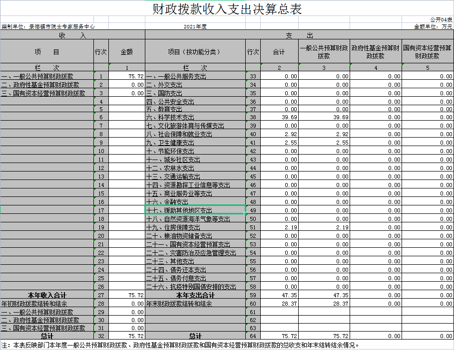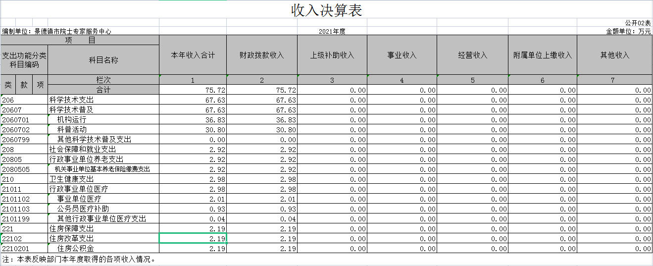 本年收入的具体构成为:财政拨款收入75.72万元,占100%;事业收入0万元,占0%;经营收入0万元,占0%;其他收入0万元,占0%。