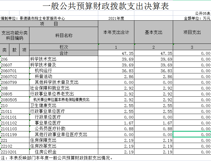 本单位2021年度一般公共预算财政拨款基本支出47.35万元,其中: