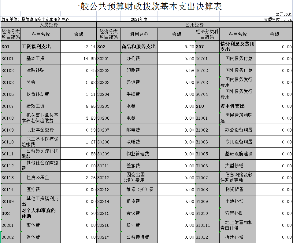 (一)工资福利支出42.14万元,较2020年增加23.40万元,下降55.53%,主要原因是:财政预算工资调整。