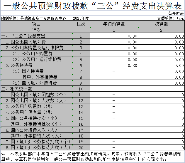 三、“三公”经费:反映财政拨款安排的因公出国(境)费、公务用车购置及运行费和公务接待费。其中,因公出国(境)费反映单位公务出国(境)的国际旅费、国外城市交通费、住宿费、伙食费、培训费、公杂费等支出;公务用车购置及运行费反映单位公务车辆购置支出(含车辆购置税)及租用费、燃料费、维修费、过桥过路费、保险费、安全奖励费用等支出;公务接待费反映单位按规定开支的各类公务接待(含外宾接待)支出。