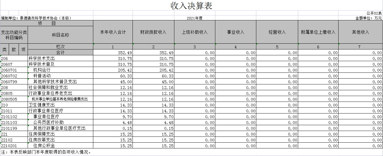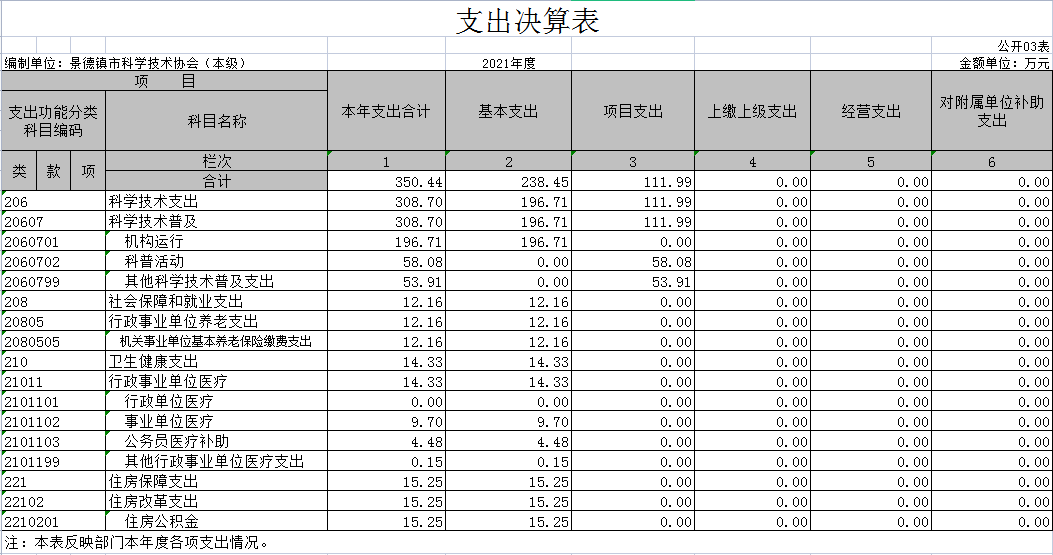 纳入本套本级决算汇编范围的单位共1个,市科协本级。