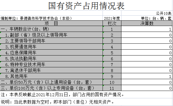 截至2021年12月31日,本部门(单位)国有资产占用情况见公开10表《国有资产占用情况表》。其中车辆中的其他用车主要是科普大篷车一辆。