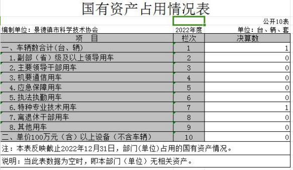 截止2022年12月31 日,本部门国有资产占用情况见公开10表《国有资产占用情况表》。其中车辆:无其他用车。