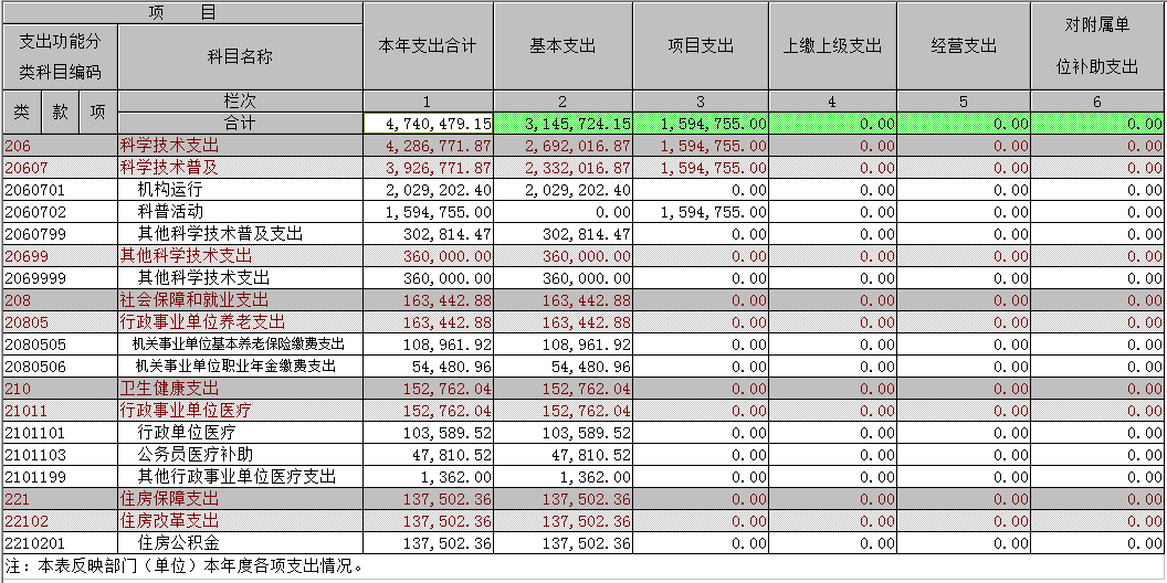 本年支出的具体构成为:基本支出314.57万元,占66.3%;项目支出159.47万元,占33.7%;经营支出0万元,占0%;其他支出(对附属单位补助支出、上缴上级支出) 0万元,占0%。